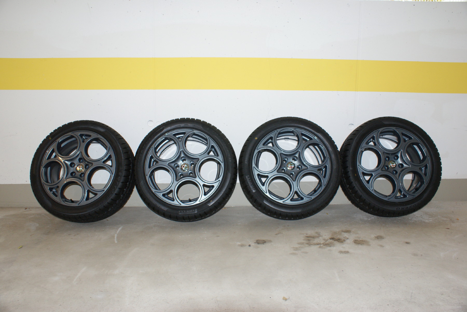 Ein Satz 17 Zoll GTA Lochdesign Felgen mit neuen Winterreifen 225/45 R17 94 V M+S Pirelli P Sottozero 240, DOT 3508