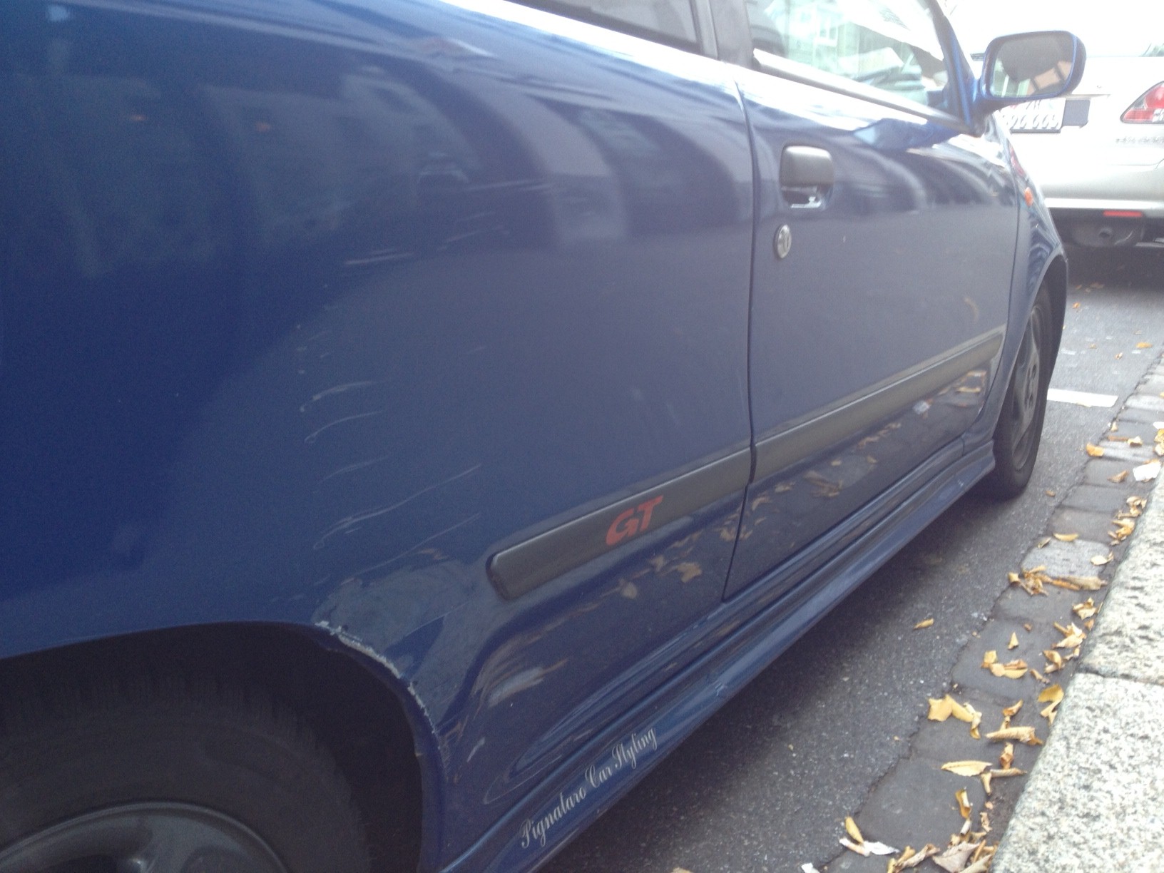 Mängel: Delle auf der Beifahrerseite (siehe Bild), leichter Hagelschaden, elektrische Verstellung Seitenspiegel Fahrerseite geht nicht (Beifahrer OK), Fensterheber nicht mehr die besten, Blinker spinnt ab und zu (sehr selten und schon lange nicht mehr vorgekommen.