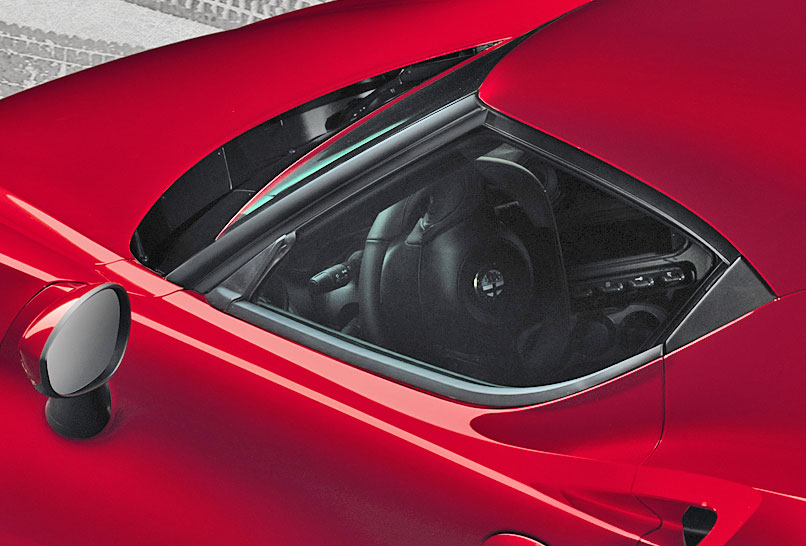 Die kompakten Maße des mit zwei eng anliegenden Schalensitzen bestückten 4C machen ihn auch im Konkurrenzumfeld einzigartig: Er ist unter vier Meter lang, 200 Zentmeter breit, 118 Zentimeter hoch und hat einen Radstand von knapp unter 2,4 Meter. Diese Abmessungen verdeutlichen die Kompaktheit des Autos und lassen seine Agilität schon erahnen.