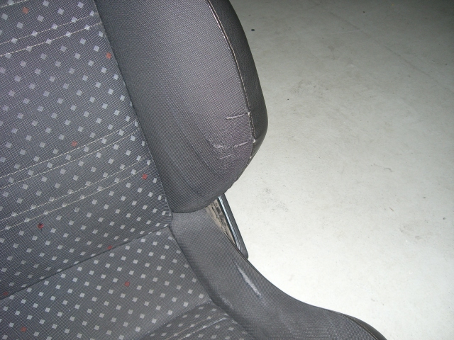 Fahrersitz hat ein Kratzer an der Sitzfläche und Gebrauchtspuren an der Rückenlehne.Lehnenbezug Hinten links hat ein Flecken.