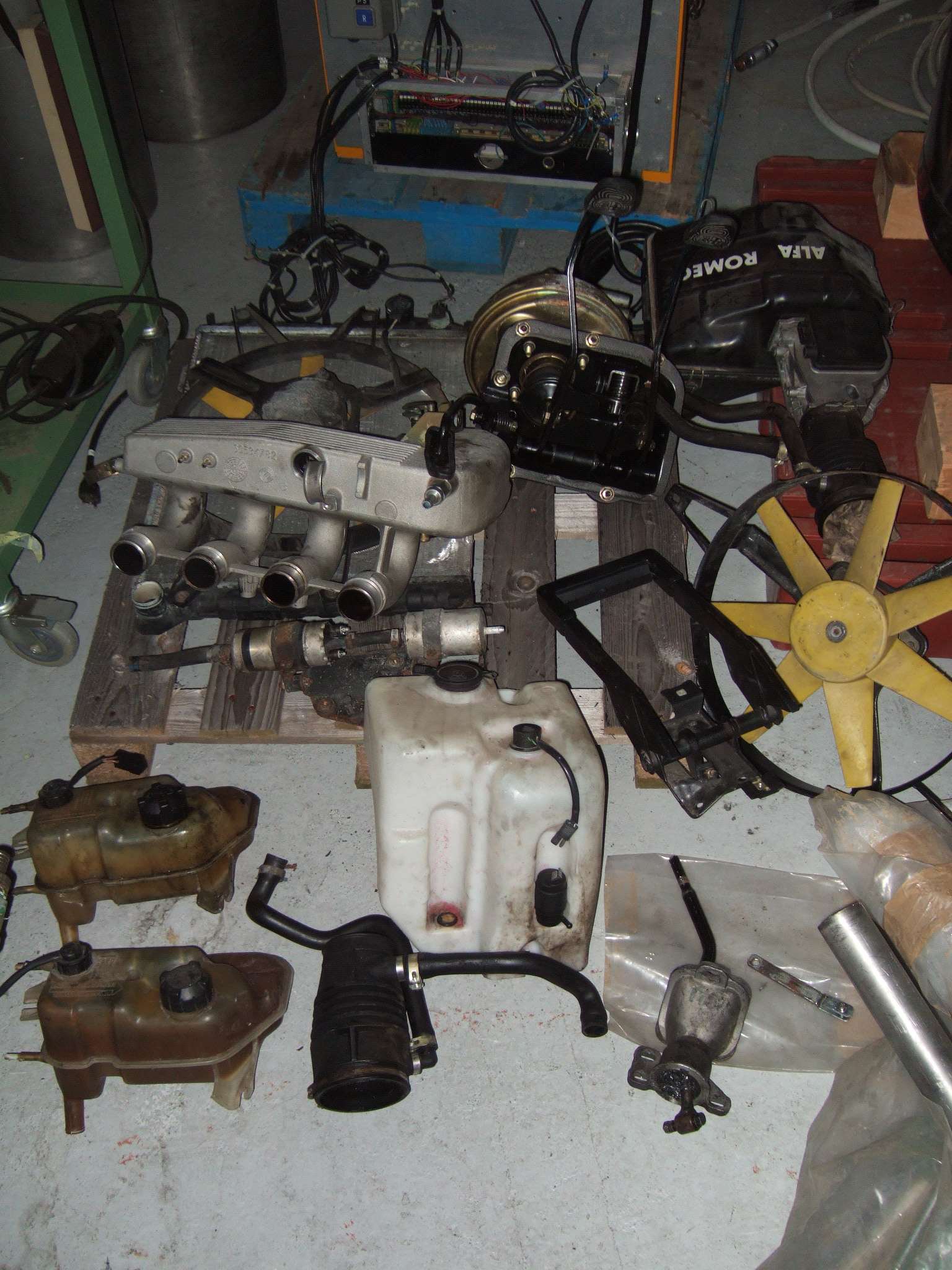 - Ansaugtrackt TS, Kuehlmittel Ausgleichsbehaelter, Wischwasserbehaelter, gekuerzter Schalthebel, Handbremse, Luefterventilator, Wasserkuehler mit Luefterventilator, kompletter Pedalkasten mit Bremskraftverstaerker, HBZ, Kupplungszyl., usw. (alles auch einz
