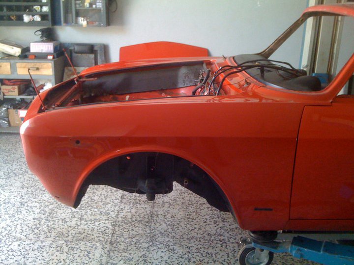 Hier nun Lackiert und halb fertig zusammen gebaut, u.a. sieht man die neuen Sitze.