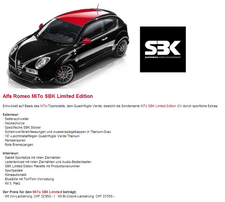 Re: MiTo SBK Limited Edition QV