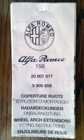 Re: Biete: Alfa Romeo 156 - ZENDER (Kotflügel-) Verbreiterungen