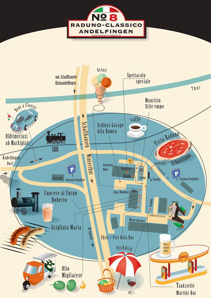 Die Vorbereitungen für das diesjährige Treffen klassischer italienischer Automobile waren bereits voll im Gange – dann die Hiobsbotschaft: zum geplanten Datum sind Holzbrücke und Bahnübergang wegen Sanierungsarbeiten gesperrt. Der gesamte Verkehr wird über den Andelfinger Marktplatz geleitet. Das erfolgreiche Konzept der vergangenen Radunos mit Vollsperrung des Dorfkerns ist somit nicht realisierbar.