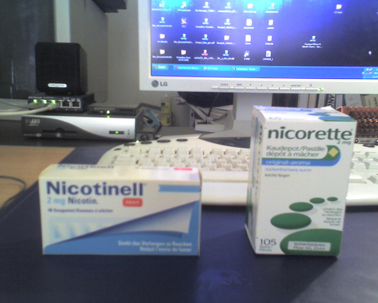 also ich hätt noch zwei grosse Verpackungen von Nicotinkaugummis (Nicorette&Nicotinell) vom letzten Versuch...