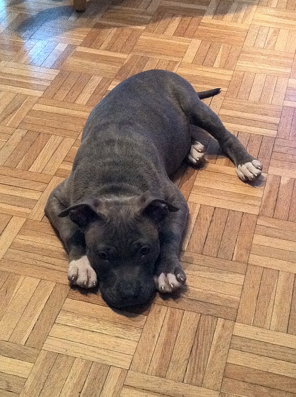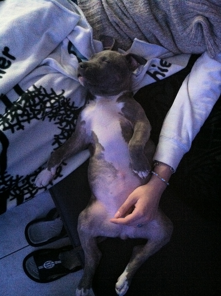 Vor zwei Wochen aus Mailand geholt... gerade mal 3 Monate alt...Reinrassiges AMSTAFF-Weibchen Shila
