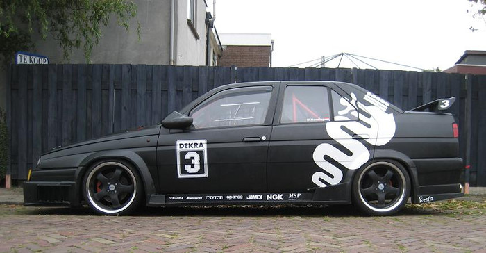 Der Alfa 155 Q4 eines Freundes! Optisch und technisch, innen wie aussen, drunter wie oben: alles vom Feinsten, alles neu, alles knallhart, seit fast zwei Jahren im Aufbau, ca. 380 PS standhaft angestrebt!
